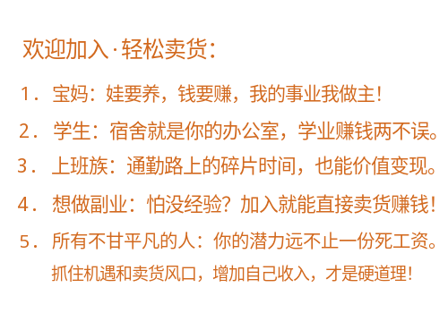 扫码加入,轻松卖货赚钱,提升你的收入水平